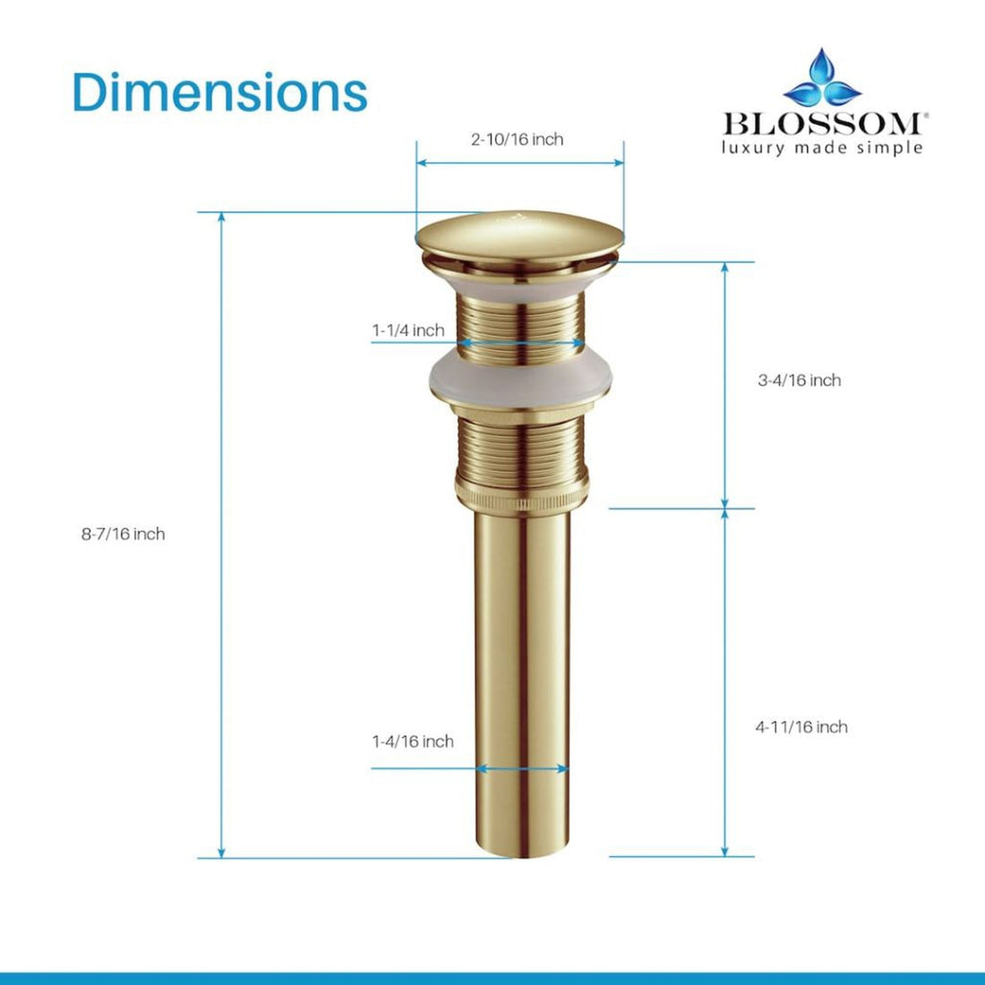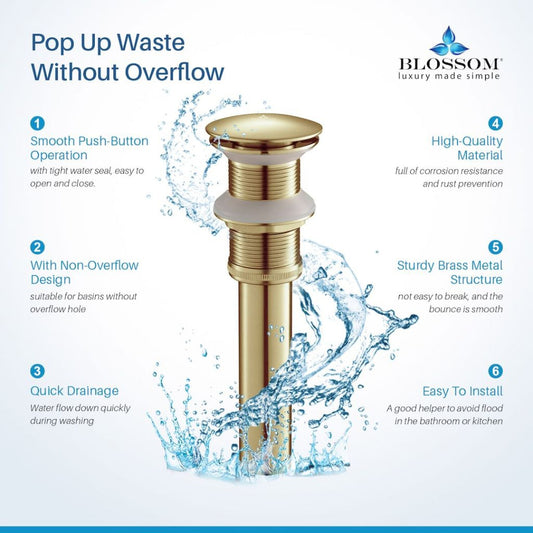 Blossom 1.25" Brushed Gold Brass Pop-Up Sink Drain Without Overflow