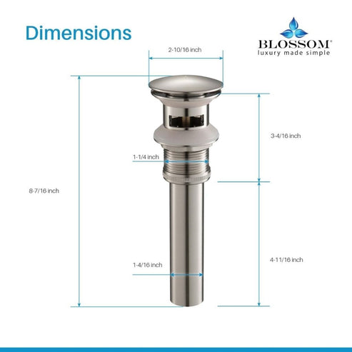 Blossom 1.25" Brushed Nickel Brass Pop-Up Sink Drain With Overflow