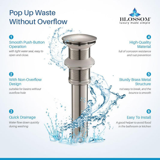 Blossom 1.25" Brushed Nickel Brass Pop-Up Sink Drain Without Overflow