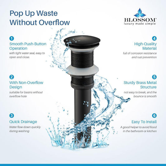 Blossom 1.25" Matte Black Brass Pop-Up Sink Drain Without Overflow