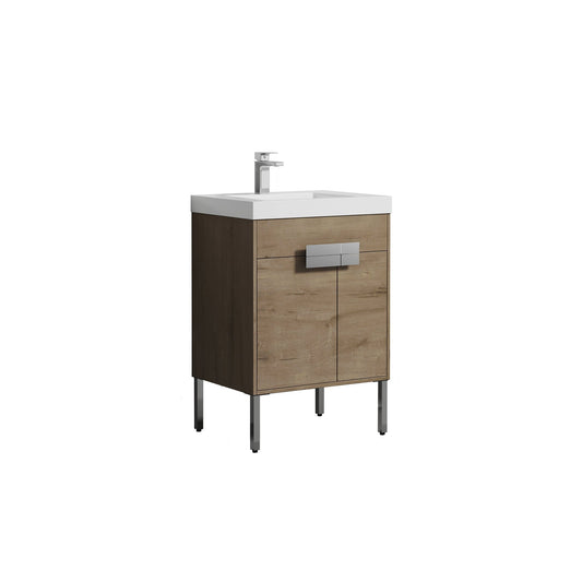 Blossom Bari 24" 2-Door Classic Oak Freestanding Single Vanity Base With Adjustable Shelf, Chrome Handles & Legs