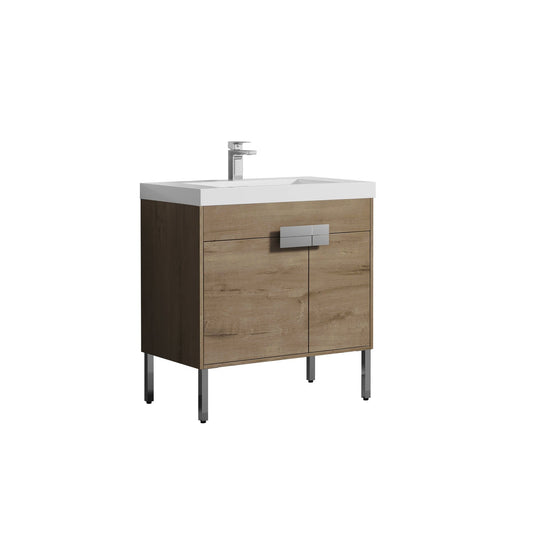 Blossom Bari 36" 2-Door Classic Oak Freestanding Single Vanity Base With Adjustable Shelf, Chrome Handles & Legs