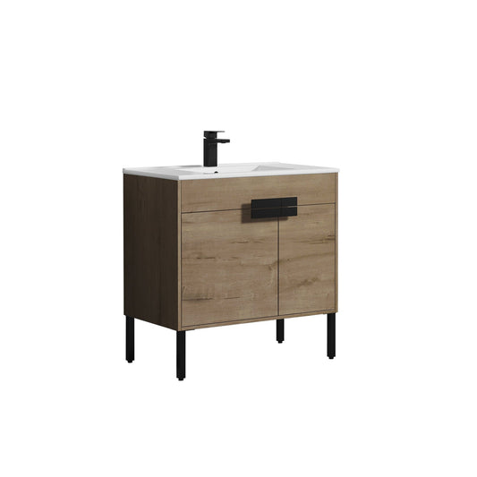 Blossom Bari 36" 2-Door Classic Oak Freestanding Single Vanity Base With Adjustable Shelf, Matte Black Handles & Legs
