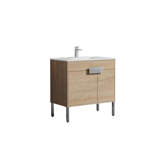 Blossom Bari 36" 2-Door Maple Freestanding Single Vanity Base With Adjustable Shelf, Chrome Handles & Legs