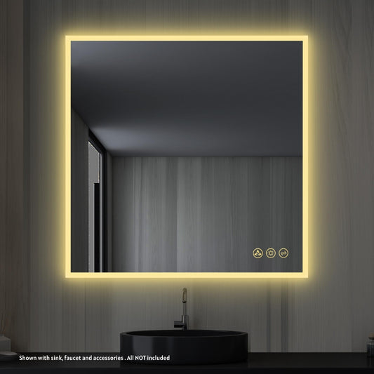 Blossom Beta 36" x 36" Wall-Mounted Square LED Mirror With Frosted Sides