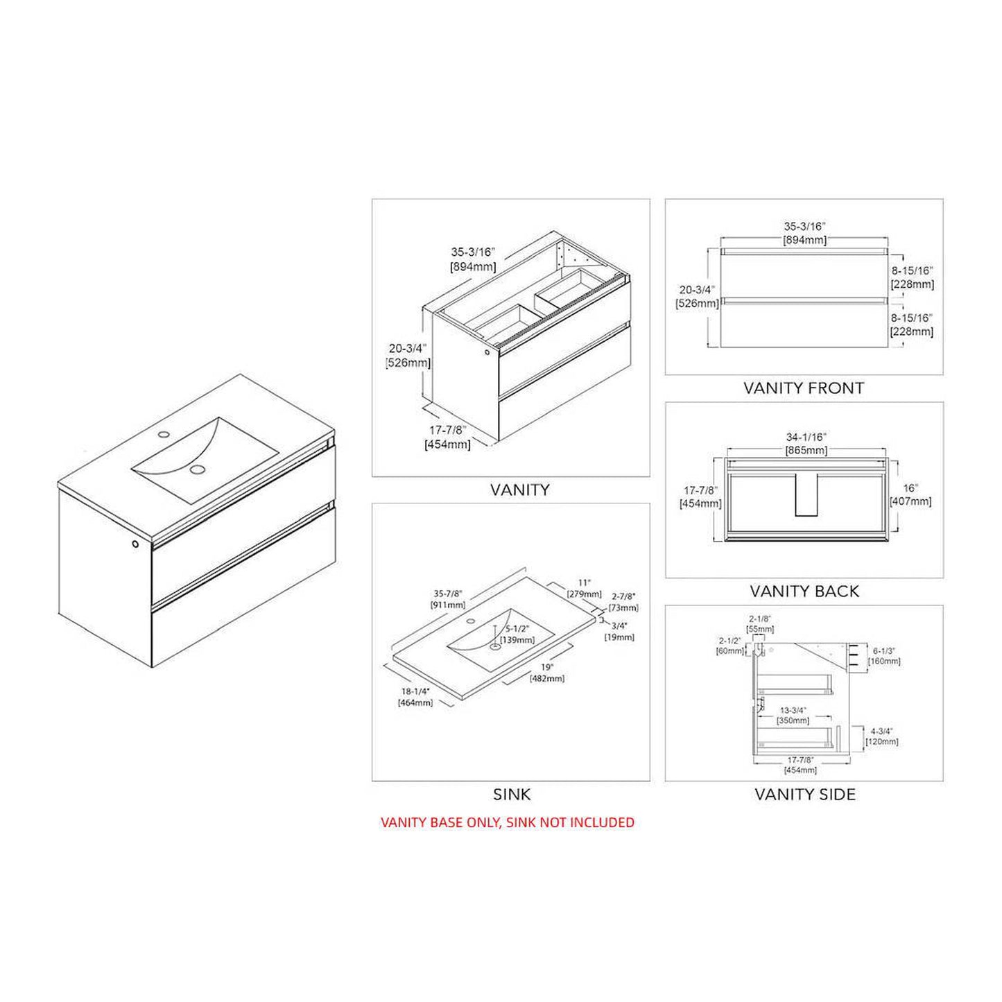 Blossom Jena 36" 2-Drawer Light Gray Wall-Mounted Vanity Base