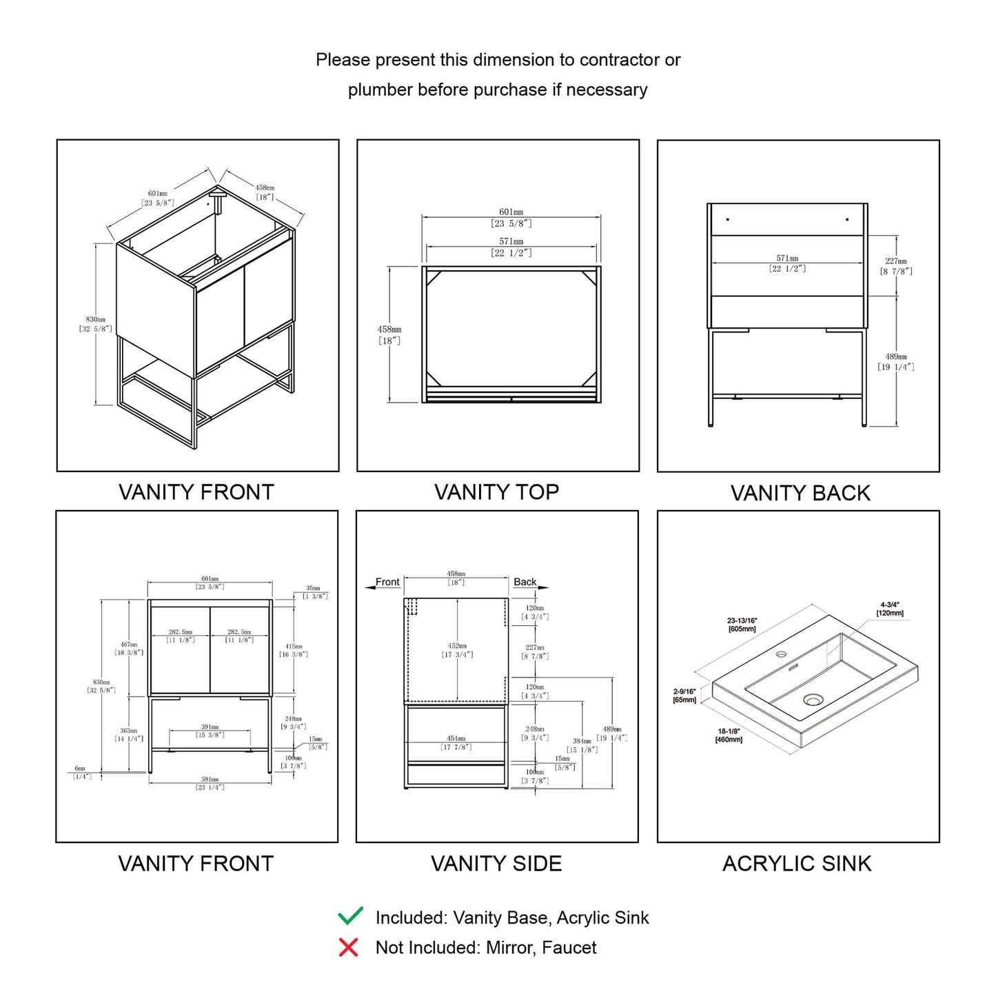 Blossom Porto 24" Matte White Freestanding Vanity With Acrylic Sink