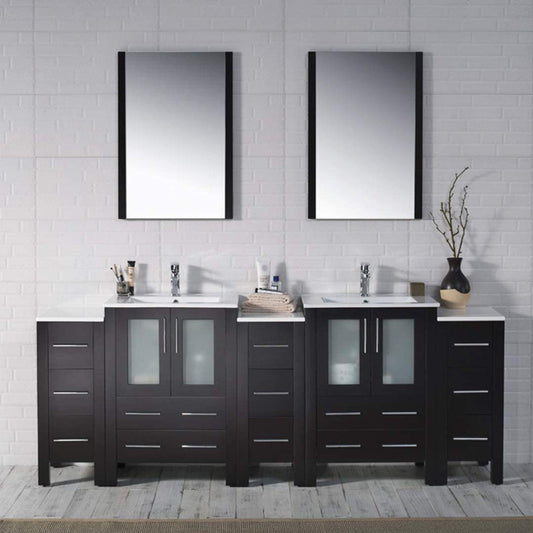 Blossom Sydney 84" Espresso Freestanding Vanity With Integrated Double Sinks Ceramic Top and Three Side Cabinet