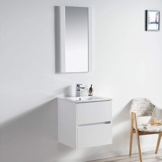 Blossom Valencia 20" 2-Drawer White Wall-Mounted Vanity Set With Ceramic Top and Integrated Single Sink