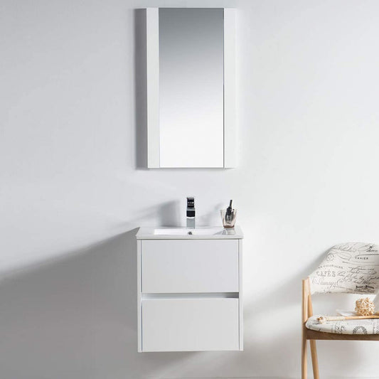 Blossom Valencia 20" 2-Drawer White Wall-Mounted Vanity Set With Ceramic Top, Integrated Single Sink and Mirror