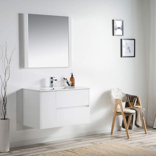 Blossom Valencia 36" 1-Door 2-Drawer White Wall-Mounted Vanity Set With Ceramic Top, Integrated Single Sink and Mirror