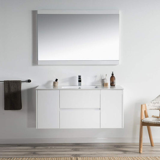 Blossom Valencia 48" 2-Door 2-Drawer White Wall-Mounted Vanity Set With Ceramic Top, Integrated Single Sink and Mirror