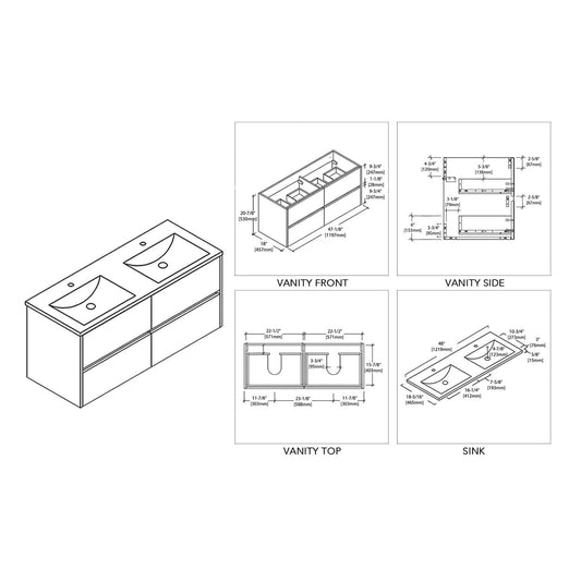 - CLASSIC TWO DRAWERS Wall-Hung Design offers sleek appearance with spacious storage spaces.
