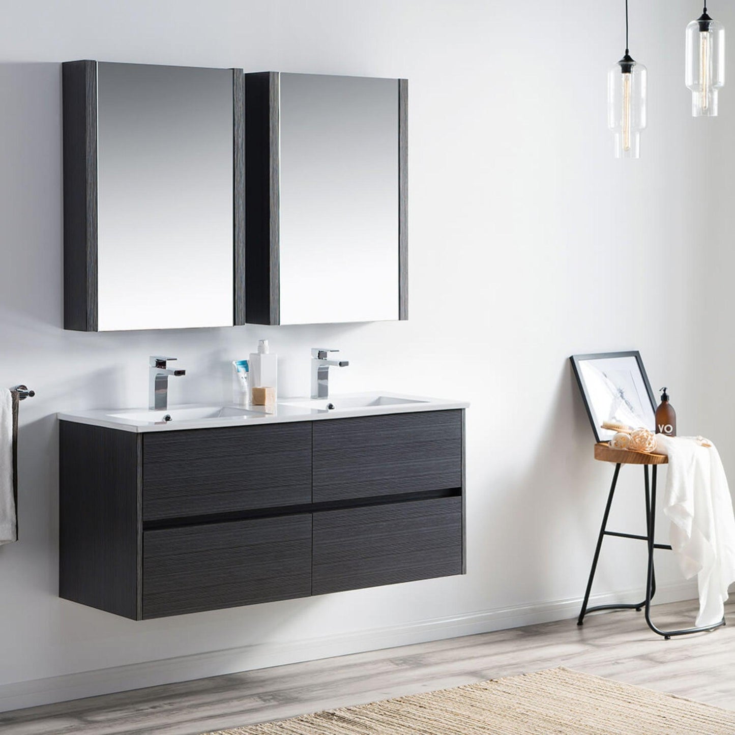 Blossom Valencia 48" 2-Drawer Silver Gray Wall-Mounted Vanity Set With Ceramic Top and Integrated Single Sink