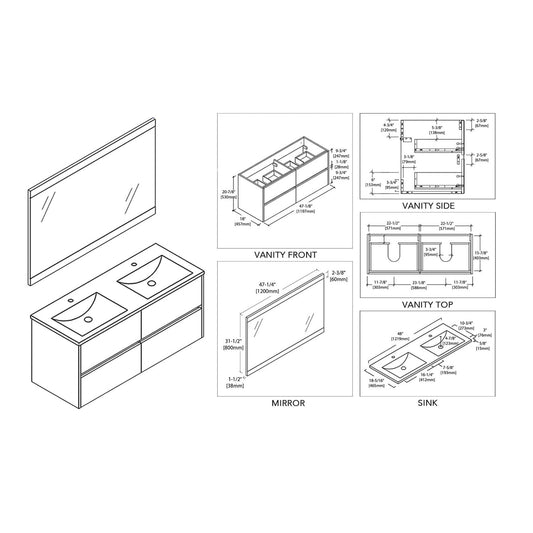 Q: What height should the wall hang vanity be installed at?A: Normally, the bottom of the vanity to the floor should be 12″ to 15″. |