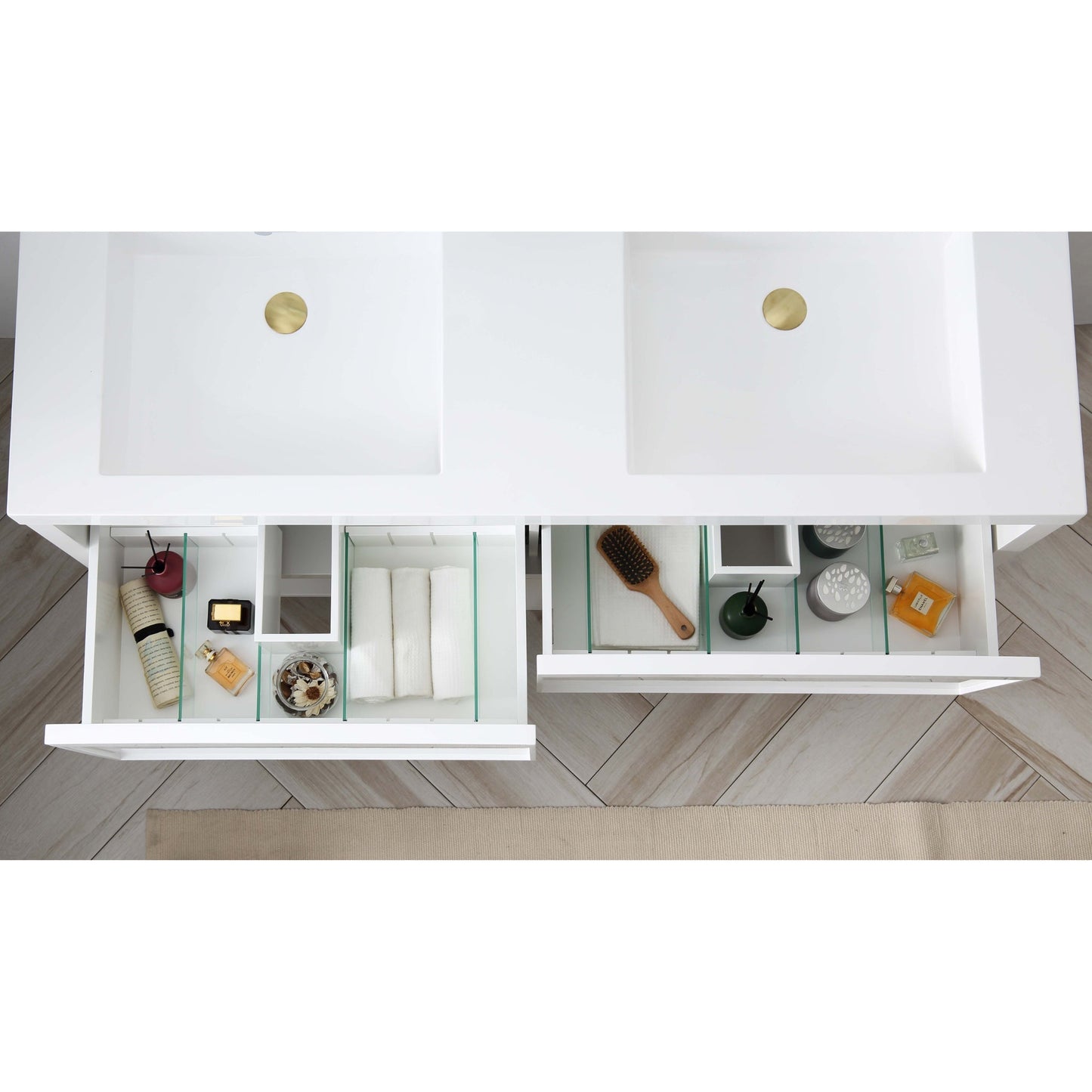 - Fully adjustable drawer(s) with full extension soft-close hardware offers you spacious storage space and keeping all daily items well organized