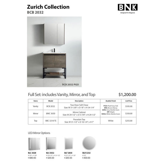 BNK BCB2032PGO Zurich Plaid Grey Oak Vanity Only Two-Door Soft Close