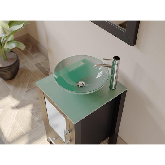 Cambridge Plumbing 18" Black Espresso Wood Single Vanity Set With Tempered Glass Countertop And Circular Vessel Sink With Brushed Nickel Plumbing Finish