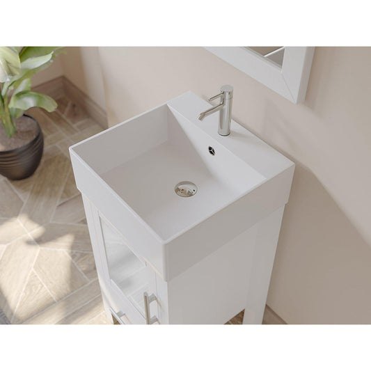 Cambridge Plumbing 18" White Single Wood Vanity Set With Porcelain Countertop And Square Vessel Sink With Faucet Hole And Polished Chrome Plumbing Finish