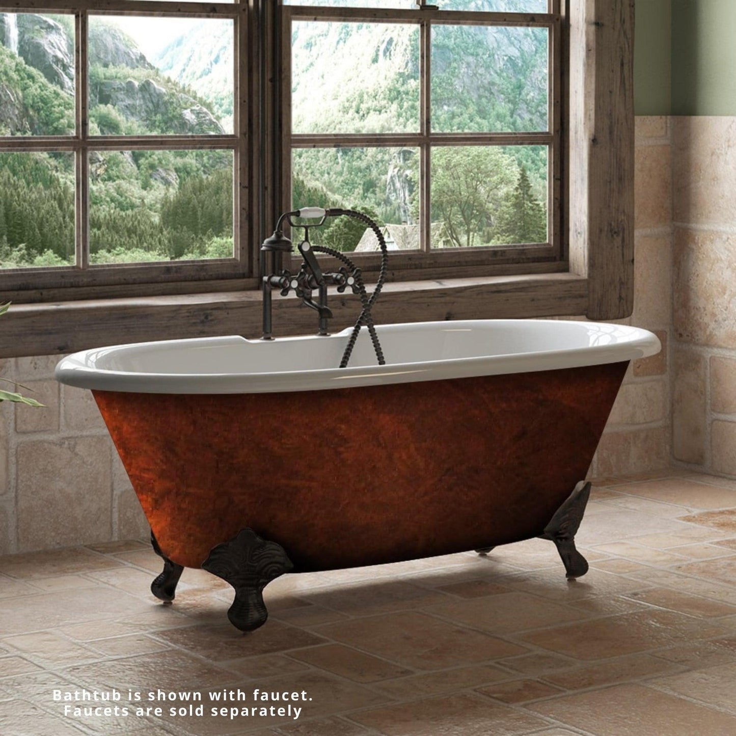 Cambridge Plumbing 60" Hand Painted Copper Bronze Cast Iron Double Ended Bathtub With Deck Holes With Oil Rubbed Bronze Feet