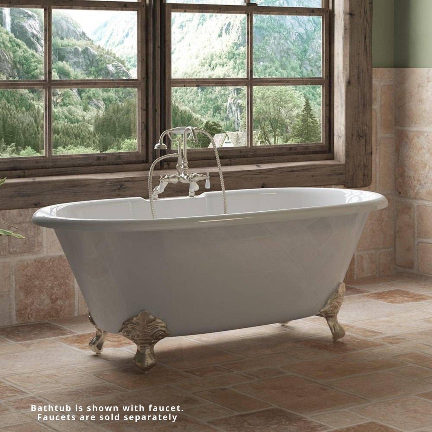 Cambridge Plumbing 60" White Cast Iron Double Ended Bathtub With Deck Holes With Brushed Nickel Feet
