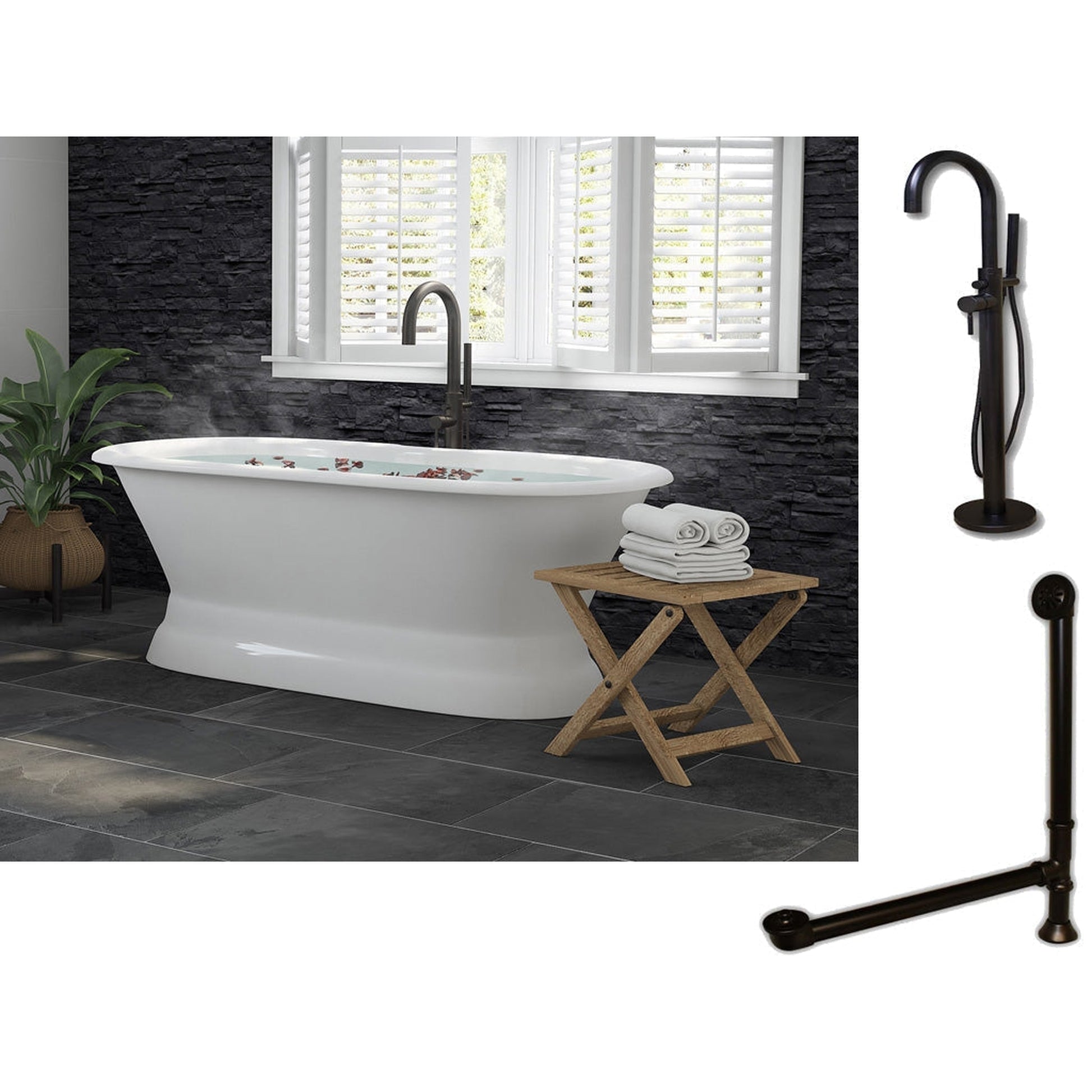 Cambridge Plumbing 60" White Cast Iron Double Ended Pedestal Bathtub With No Deck Holes And Complete Plumbing Package Including Modern Floor Mounted Faucet, Drain And Overflow Assembly In Oil Rubbed Bronze