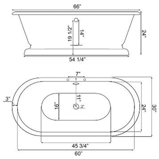 Our Cast Iron double-ended pedestal tub is 66" of perfection. Relax in your own home by escaping into 16" of water as you recline from either end of the tub. This double-ended tub is big enough for two. This 66" cast iron dual-ended pedestal tub will endure the test of time and will provide generations with the perfect haven for relaxation. Glazed with a porcelain interior and painted exterior it is beautiful as well. This model has deck mount faucet holes.