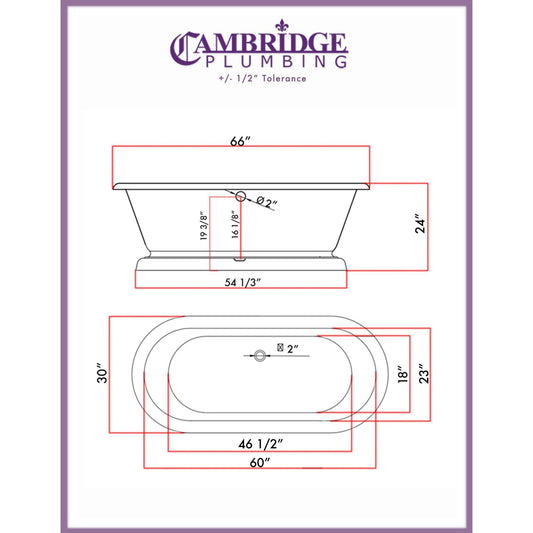 Cambridge Plumbing 66" White Cast Iron Double Ended Pedestal Bathtub With No Deck Holes