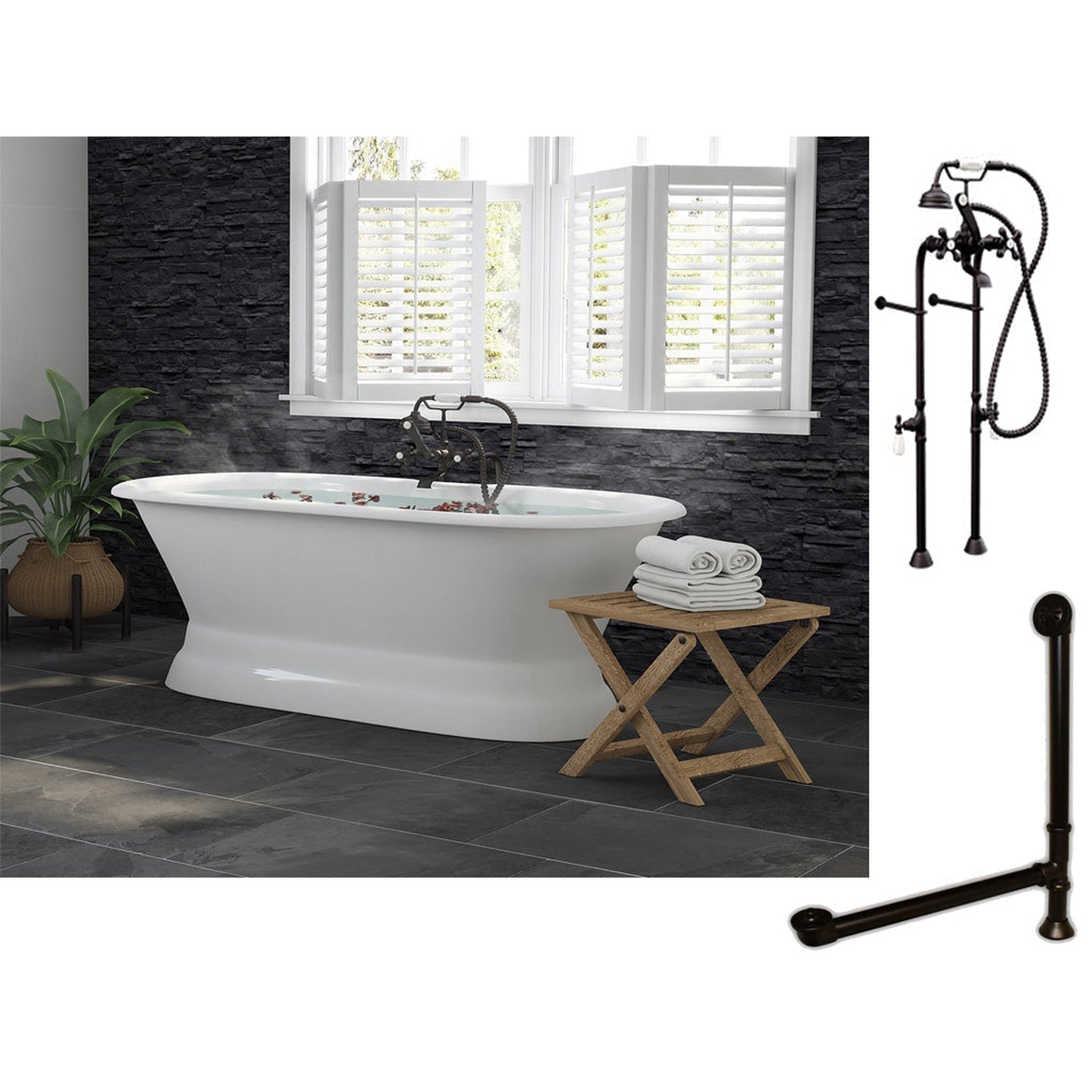 Cambridge Plumbing 66" White Cast Iron Double Ended Pedestal Bathtub With No Deck Holes And Complete Plumbing Package Including Floor Mounted British Telephone Faucet, Drain And Overflow Assembly In Oil Rubbed Bronze