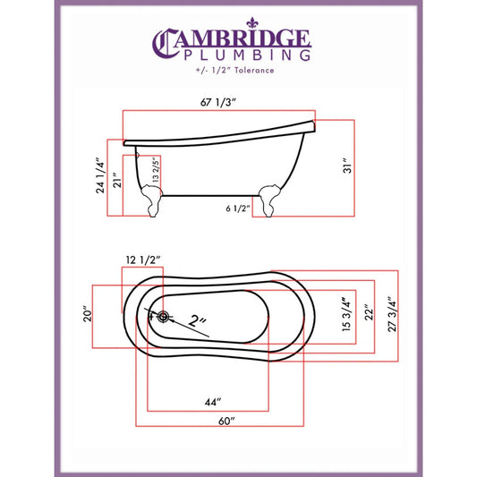This stylish, lightweight acrylic slipper clawfoot tub has Imperial ball and claws feet. This tub is the perfect selection for those looking for fashion, comfort, and affordability. This model has no faucet holes. Acrylic Clawfoot Bathtubs & Pedestal Tubs are very durable, yet light-weight. Over the past several years, the popularity of acrylic bathtubs has increased dramatically as an affordable alternative to cast iron and other materials.
