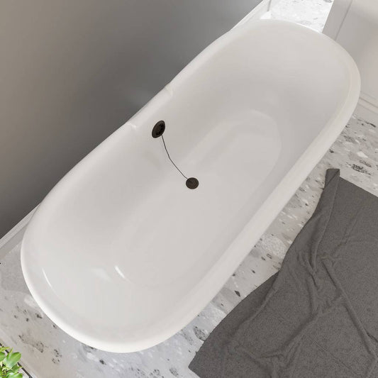 Always pleasant and warm to the touch, Dolomite Mineral Composite is 75% crushed dolomite and 25% elastic resin which ensures resistance under load, damage from impact, and the effects of high and low temperatures. The usage characteristics of Mineral Composite are superior to those of traditional materials. It is more comfortable and the superior nano coat finish has insusceptibility to bacterial growth, absorption of water, and chemical substances, ensuring long life and ease of care. The best you can buy! Double-ended clawfoot tub with no faucet holes and Oil rubbed bronze feet. Drain and overflow assembly included.