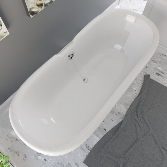 Cambridge Plumbing 69" White Dolomite Mineral Composite Double Ended Bathtub With No Faucet Holes And Polished Chrome Lion Paw Feet
