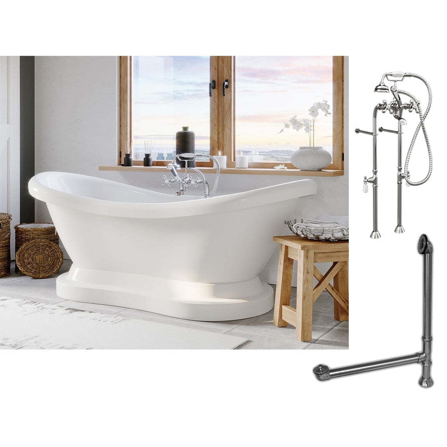 Acrylic Double Ended Pedestal Slipper Bathtub 69" X 28" with No Faucet Drillings and Complete Plumbing Package. Acrylic Clawfoot Bathtubs & Pedestal Tubs are very durable, yet light-weight. Over the past several years, the popularity of acrylic bathtubs has increased dramatically as an affordable alternative to cast iron and other materials.