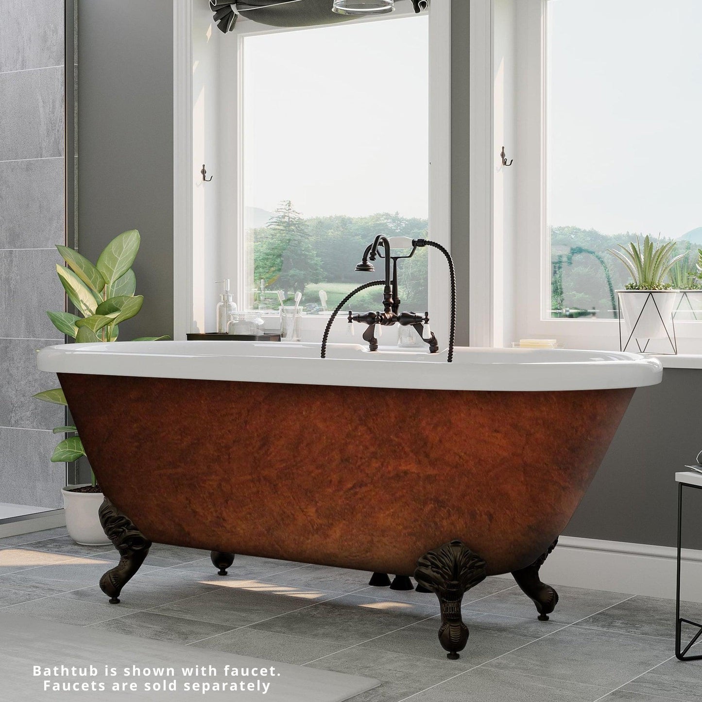 This stylish, lightweight acrylic double-ended clawfoot tub has an Imperial ball & claw feet. This tub is the perfect selection for those looking for fashion, comfort, and affordability. Our hand paint copper bronze finish is extremely close to real copper. This model has Deckmount Faucet Holes. Acrylic Clawfoot Bathtubs & Pedestal Tubs are very durable, yet light-weight. Over the past several years, the popularity of acrylic bathtubs has increased dramatically as an affordable alternative to cast iron and other materials.