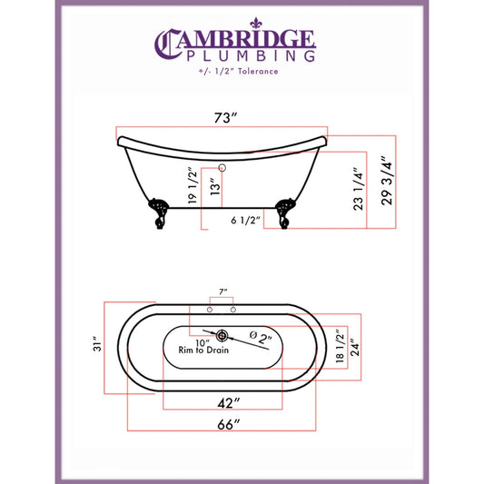Cambridge Plumbing 73" Hand Painted Scorched Platinum Double Slipper Clawfoot Acrylic Bathtub With Deck Holes With Polished Chrome Clawfeet