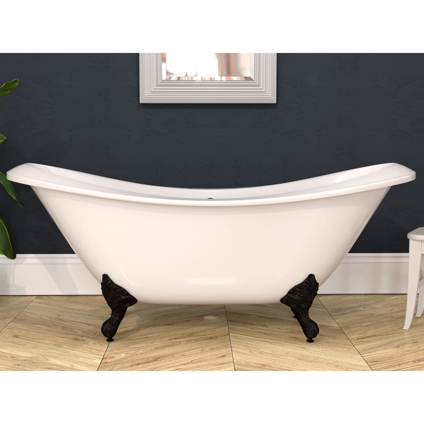 This double-ended slipper bathtub with its clawfeet creates a dramatic appearance in the bathroom. For added comfort, the double slipper tub is extra-long and will easily accommodate two. This tub has no faucet holes. Acrylic Clawfoot Bathtubs & Pedestal Tubs are very durable, yet light-weight. Over the past several years, the popularity of acrylic bathtubs has increased dramatically as an affordable alternative to cast iron and other materials.