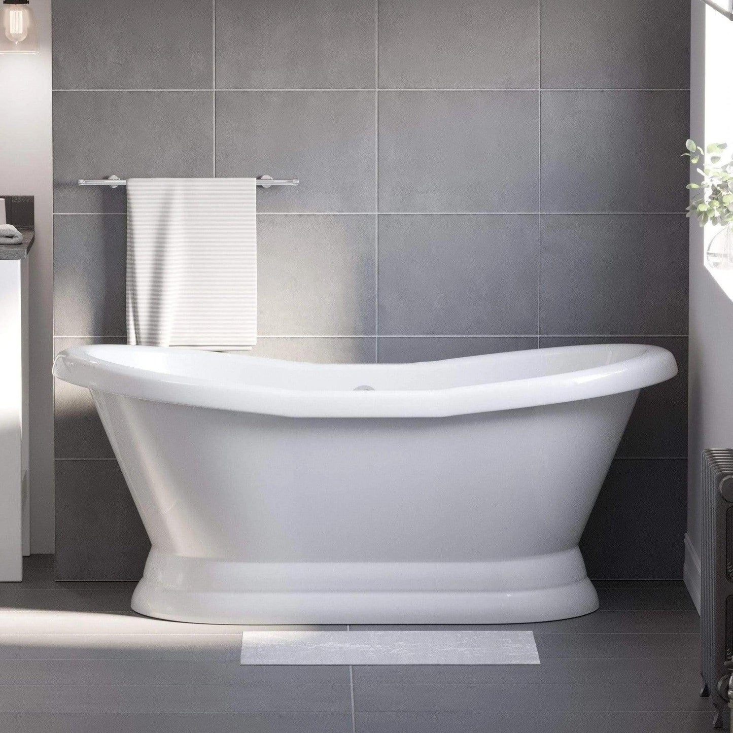 Cambridge Plumbing Amber Waves 68" Gloss White Acrylic Double Slipper Pedestal Bathtub With No Deck Holes And Continuous Rim