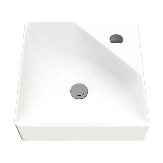 An elegant small square corner sink solution for your small condo bathroom or basement bathroom and powder rooms. The ST-1111 Wall Hung Square Corner Bathroom Sink is made from a premium non-porous solid surface with a matte white finish for a pure touch of luxe. Built for endurance and timelessness, this bathroom sink is the perfect solution for those tricky corners and compact spaces. Complete with an overflow feature to flow our water when the basin gets too full and easy wall-hung installation.