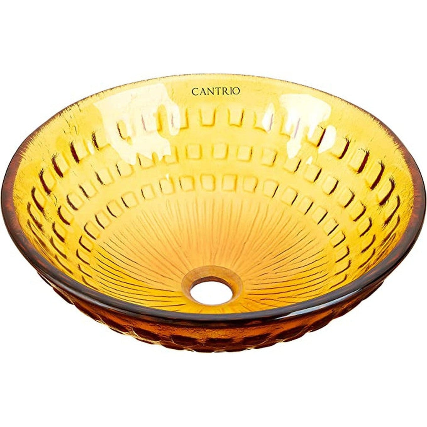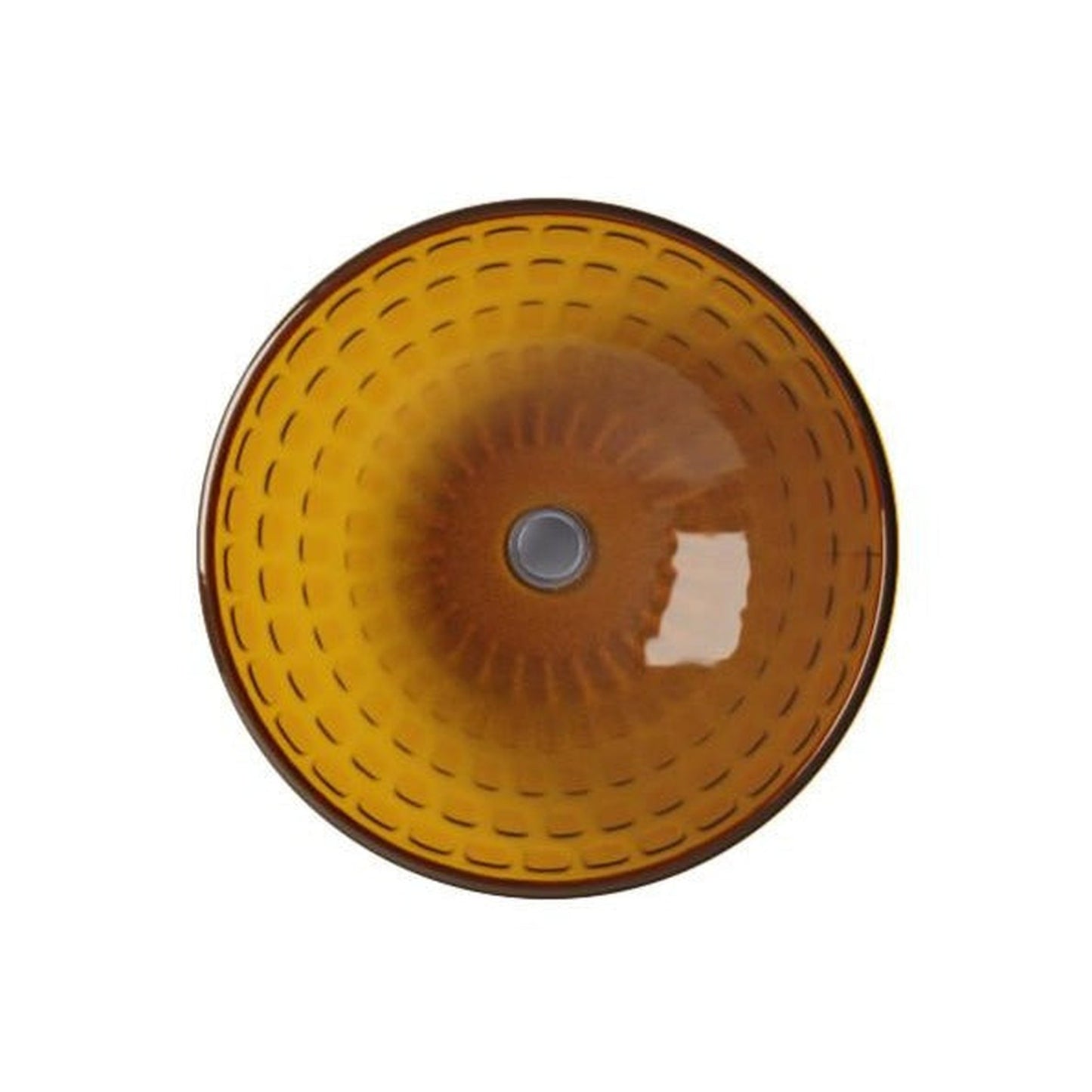 Cantrio Koncepts 17" Round Amber Stained Glass Vessel Sink With Embossed Inlays