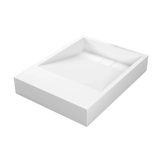 The contemporary form of the ST-24184 Solidtech Square Above Counter Bathroom Sink will effortlessly flow into any modern bathroom design. Made from non-porous Solidtech for a low-maintenance and durable surface to endure generates. The above counter vessel sink features a unique modern slanted basin design in a stunning white matte finish. Integrates seamlessly with cabinetry and will add a stylish and relaxed feel to your bathroom space.