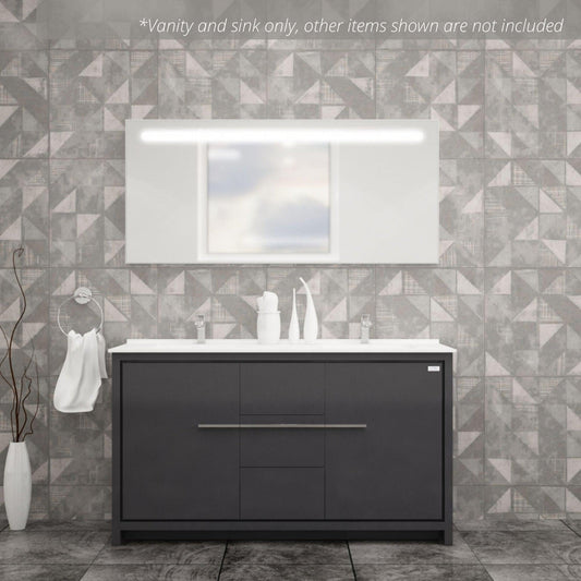 Casa Mare Alessio 60" Glossy Gray Bathroom Vanity and Acrylic Double Sink Combo