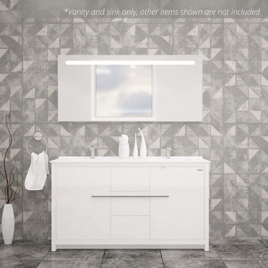 Casa Mare Alessio 60" Glossy White Bathroom Vanity and Acrylic Double Sink Combo
