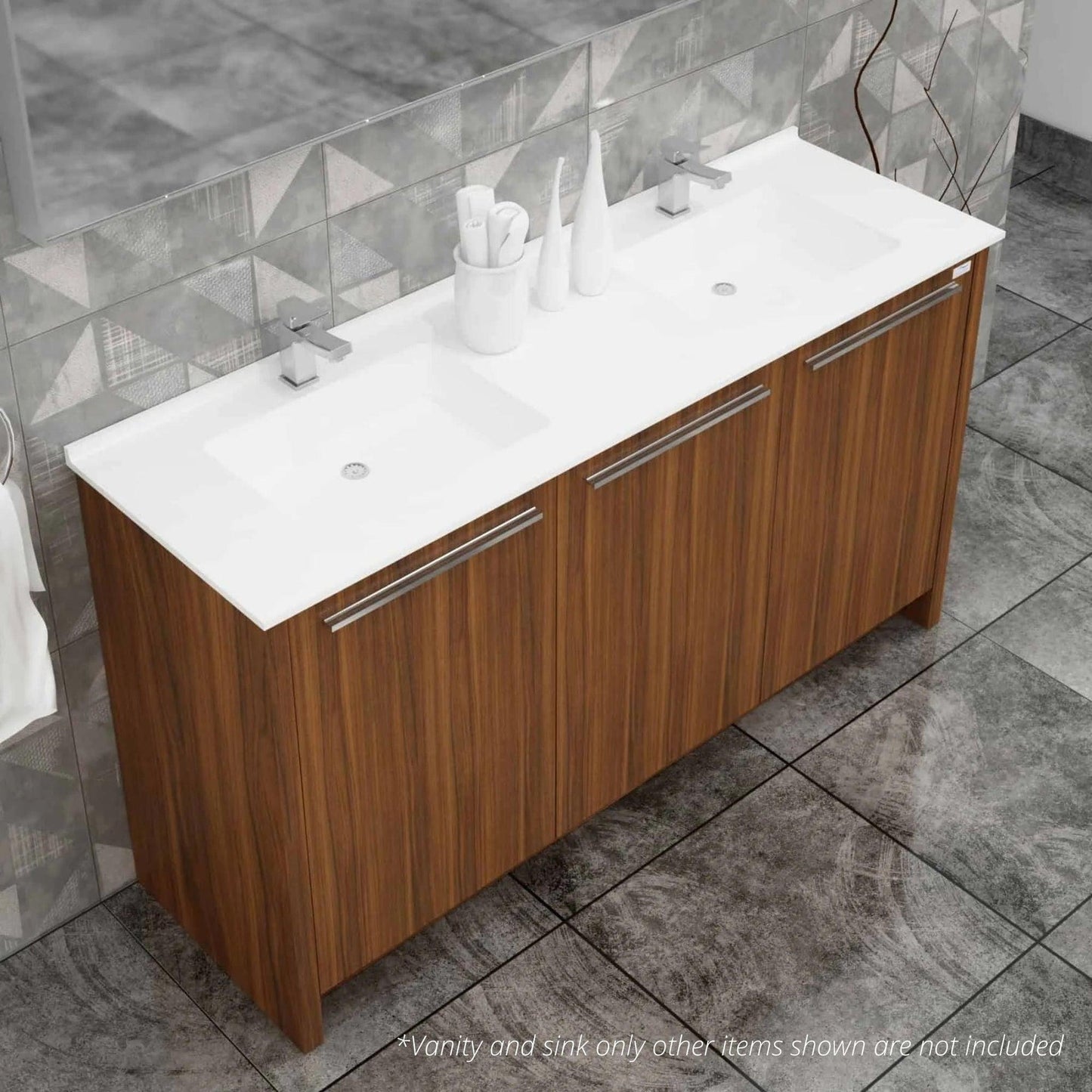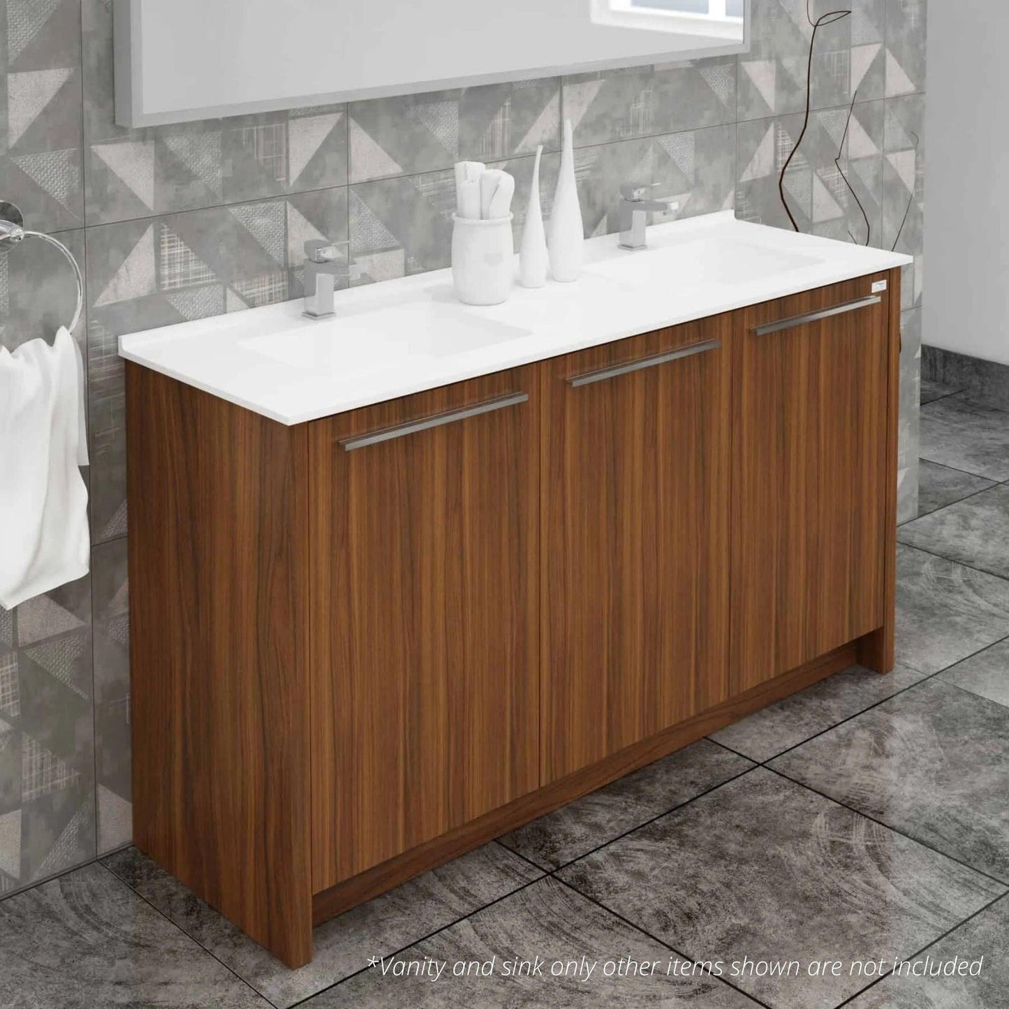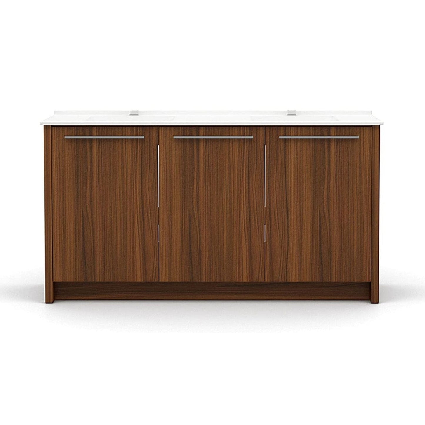 Casa Mare Benna 63" Matte Walnut Bathroom Vanity and Acrylic Double Sink Combo