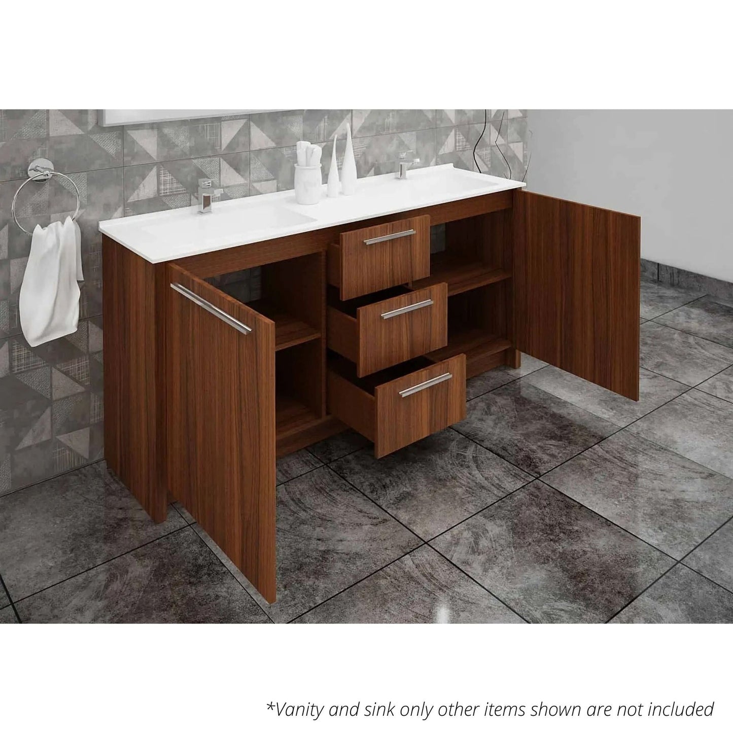 Casa Mare Nona 71" Matte Walnut Bathroom Vanity and Acrylic Double Sink Combo