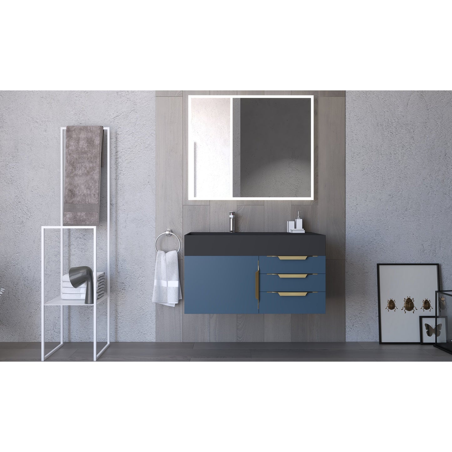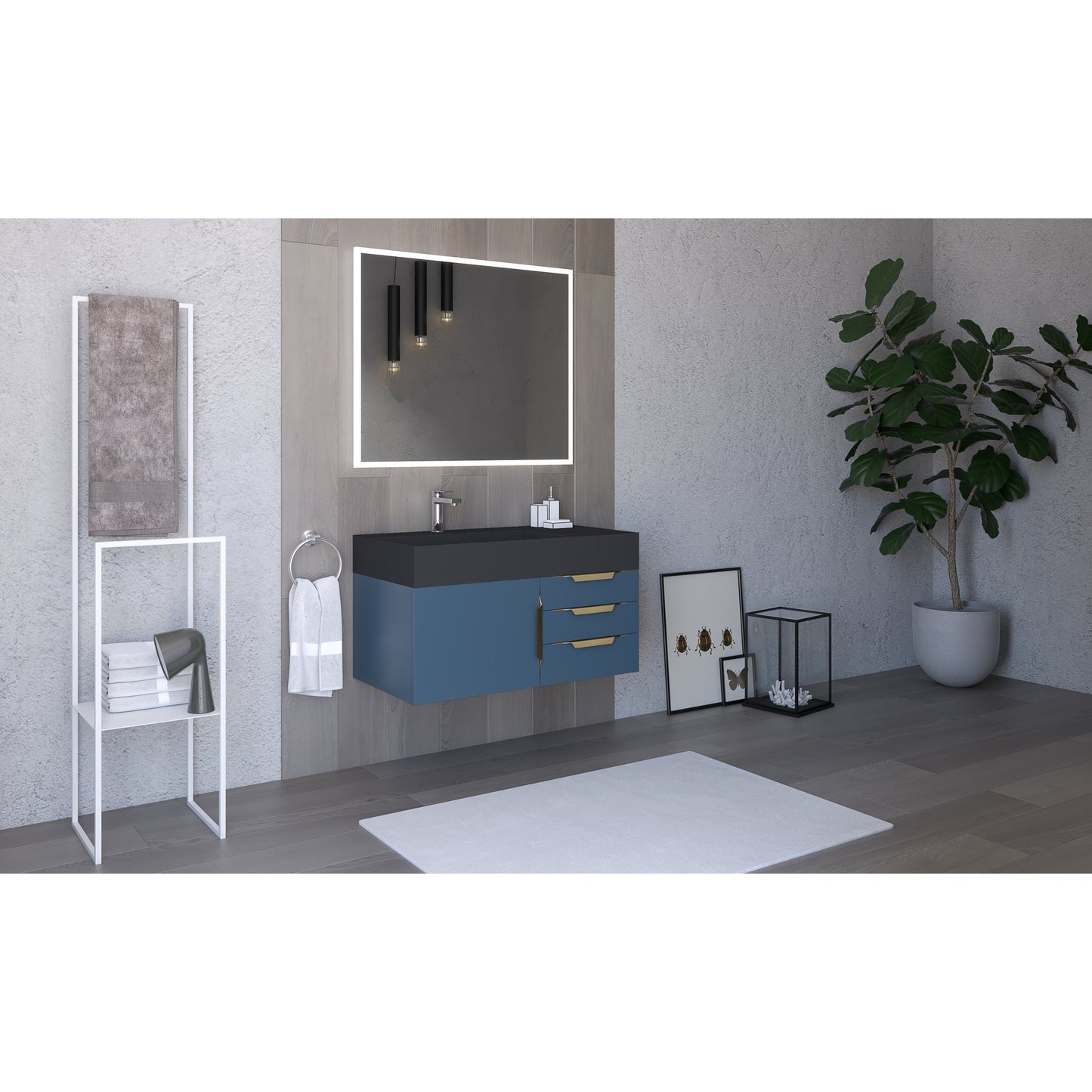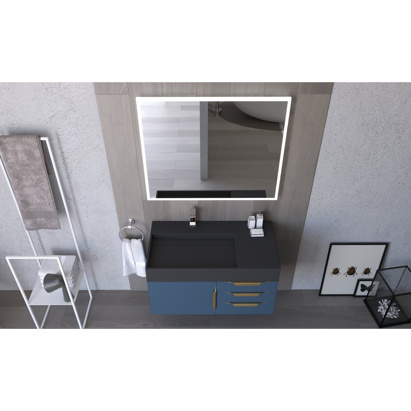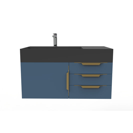 Castello USA Amazon 36" Blue Single Vanity Set With Left Offset Black Top and Gold Handles