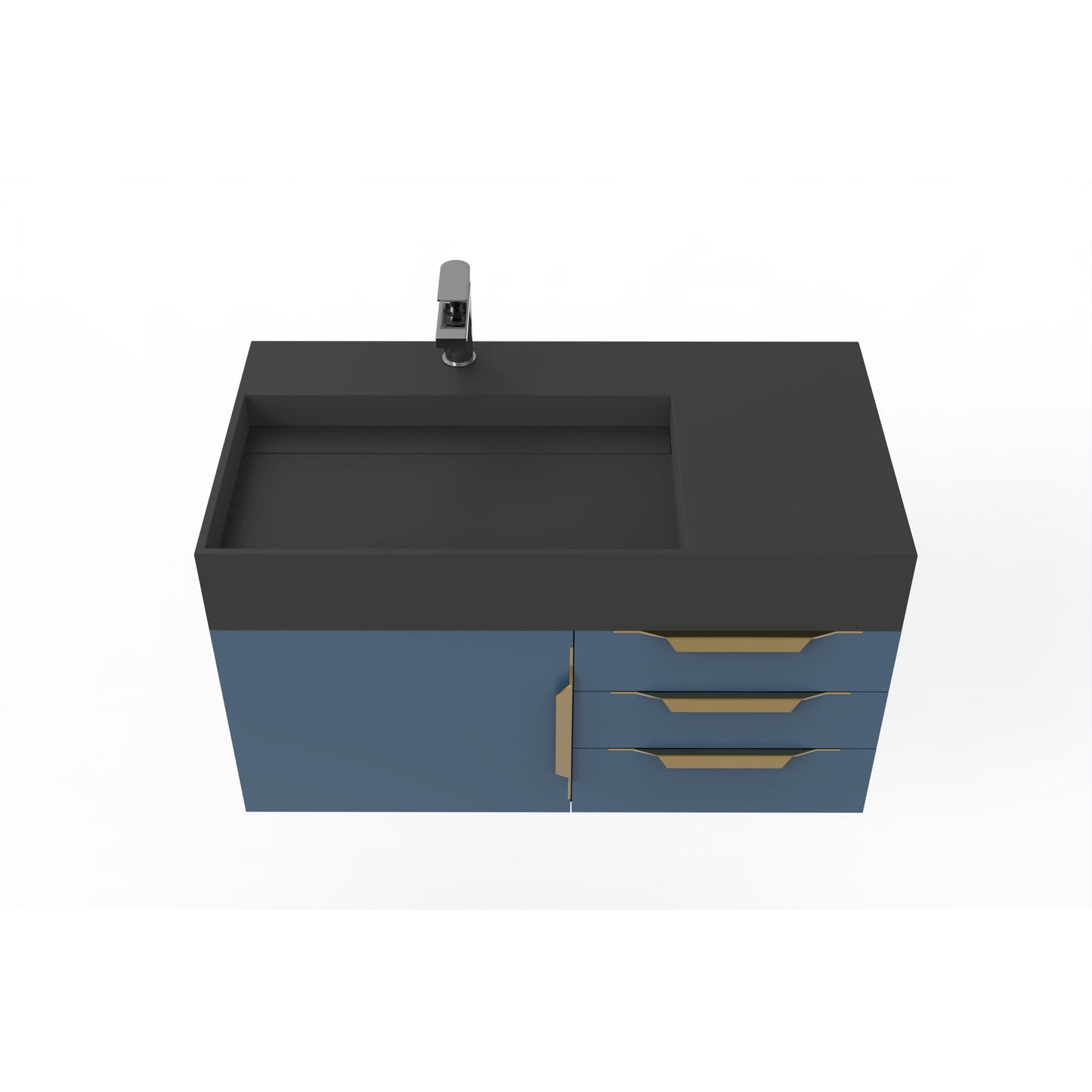 SKU:CastelloUSA-Amazon-36"-Blue-Vanity Set-Left Offset Black Top-Gold Handles