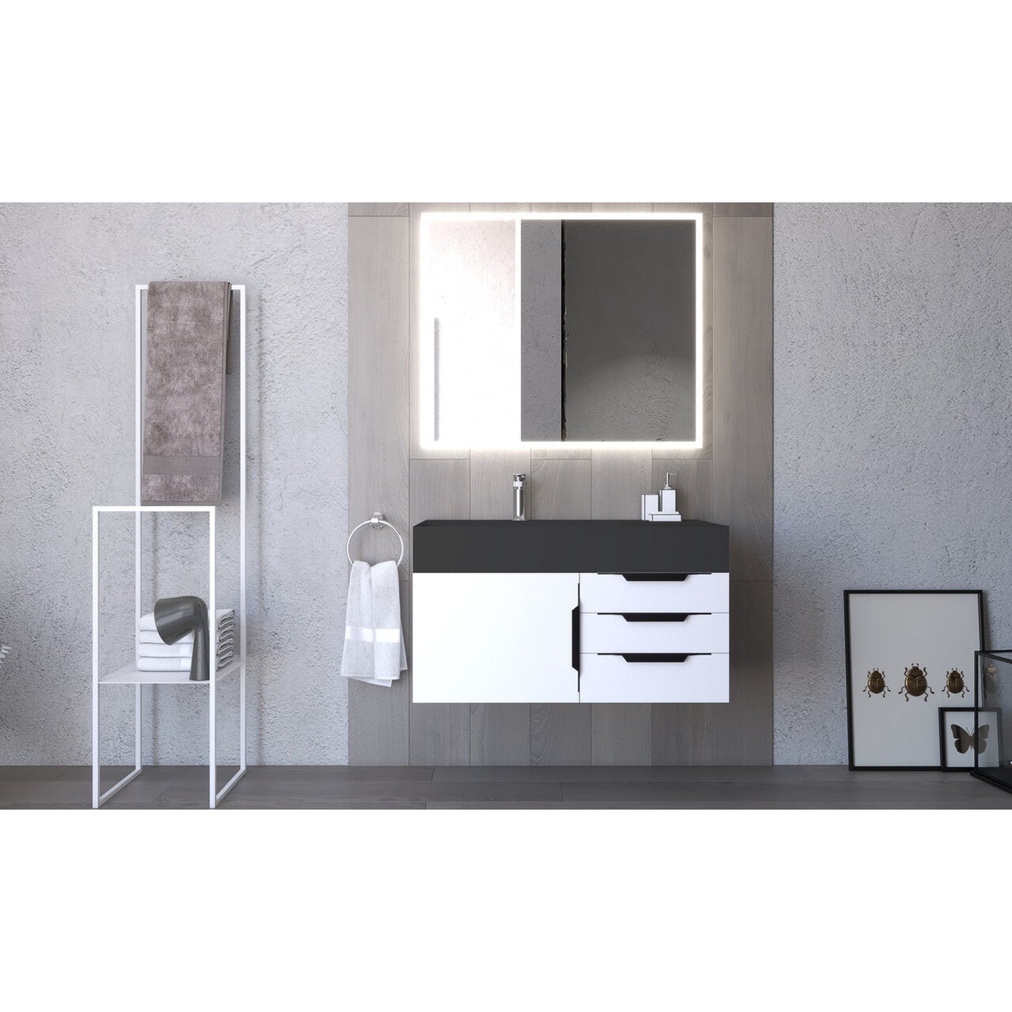 Castello USA Amazon 36" White Single Vanity Set With Left Offset Black Top and Black Handles