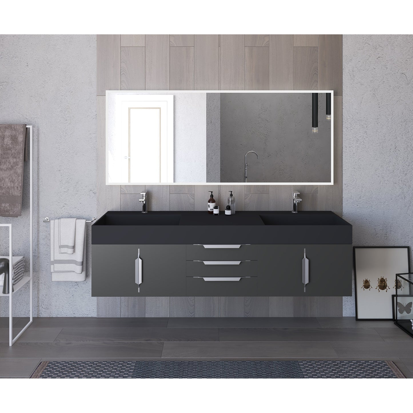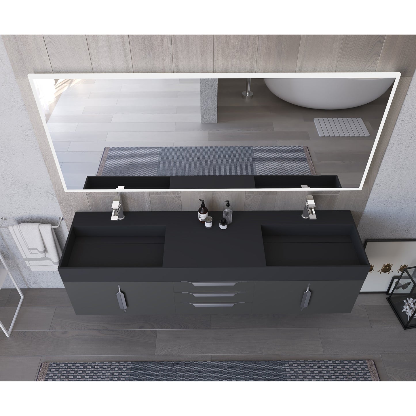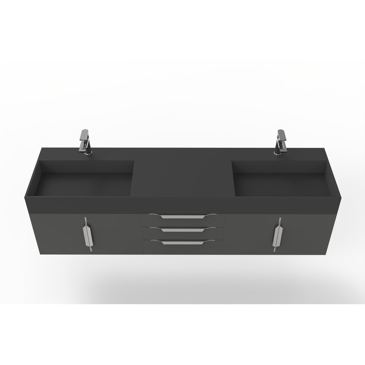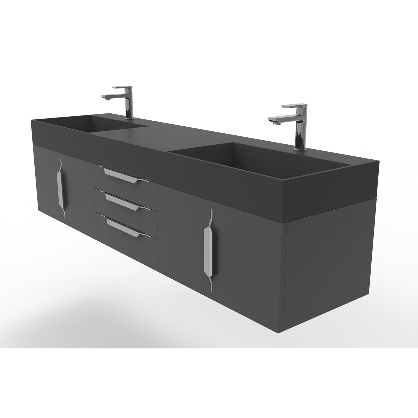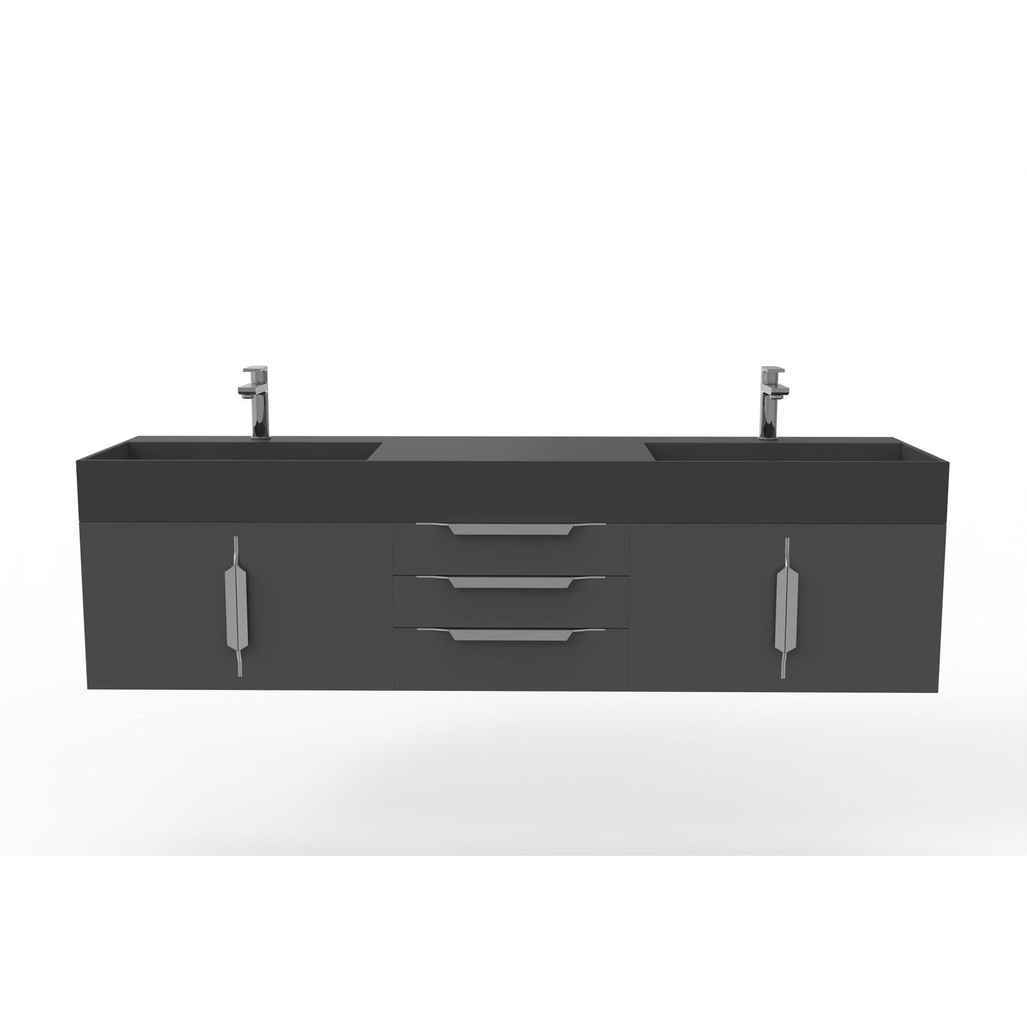 Castello USA Amazon 72" Black Double Vanity Set With Black Top and Chrome Handles