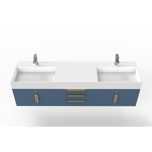 Castello USA Amazon 72" Blue Double Vanity Set With White Top and Gold Handles