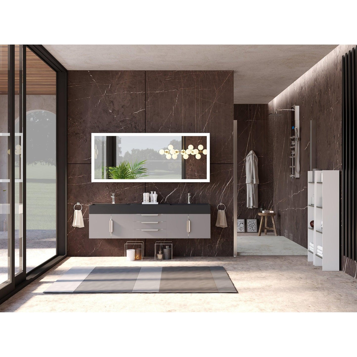 Castello USA Amazon 72" Gray Double Vanity Set With Black Top and Black Handles